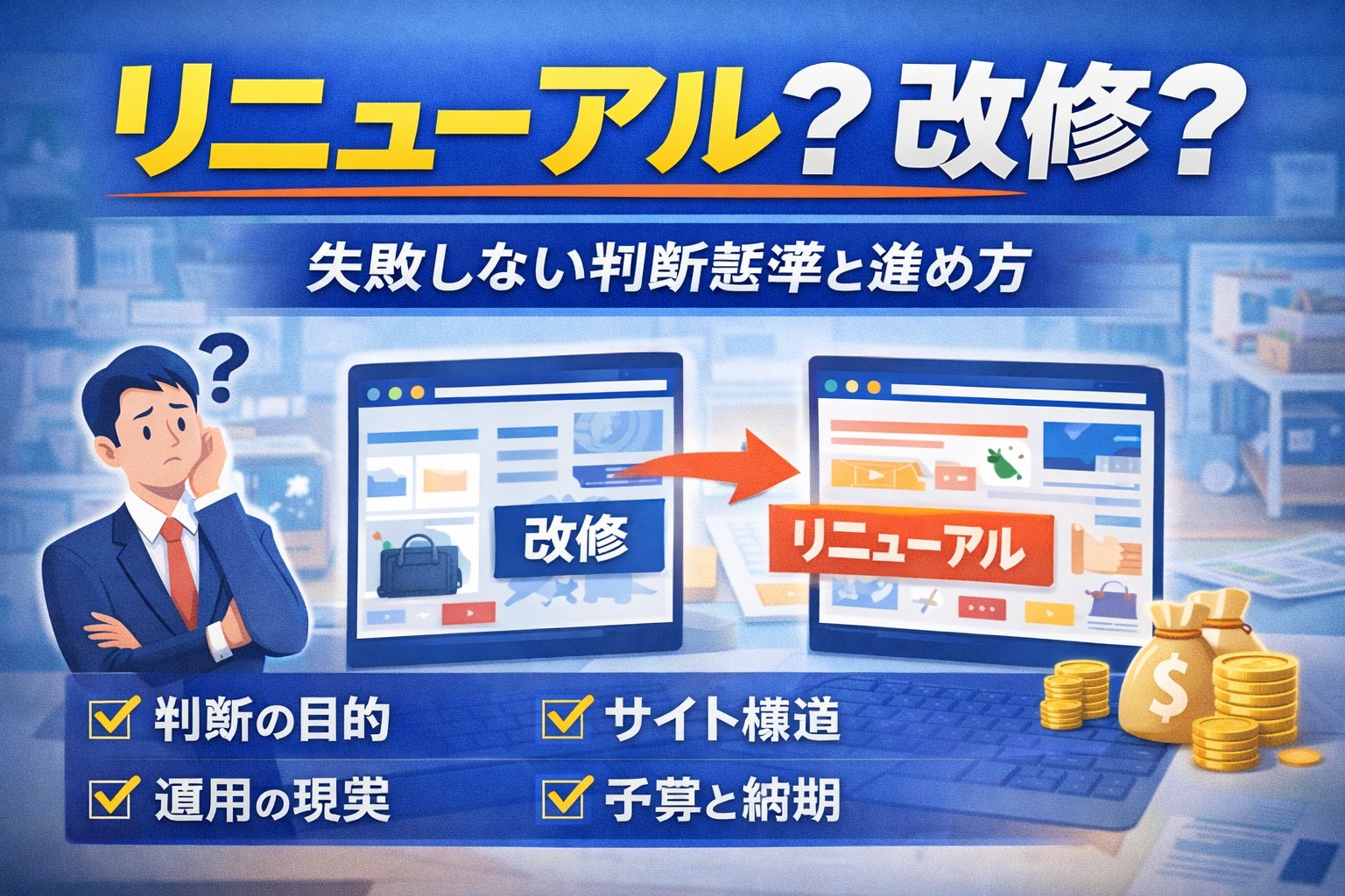 この記事では、リニューアル(作り直し)と改修(部分改善)をどう判断するかを、成果につながる観点で整理します。